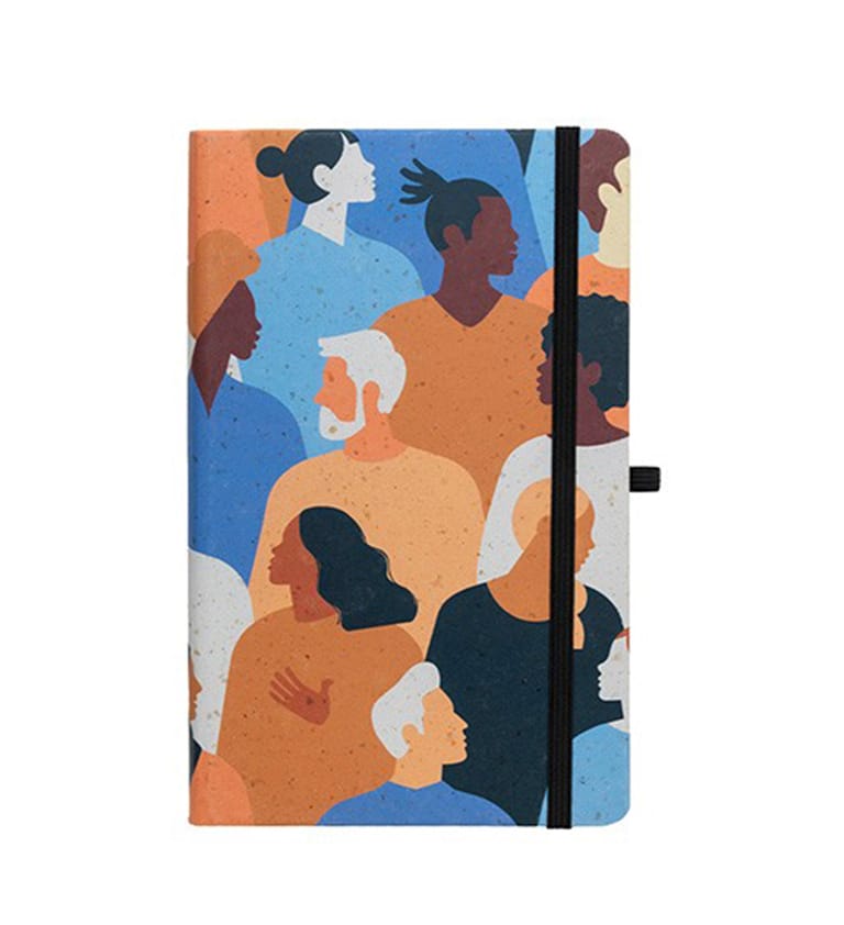Standardowa, papierowa okładka ofertowana bez foliowania. Możliwość znakowania przez tłoczenie z folią, nadruk w pełnym kolorze lub sitodruk. Papier pochodzący z recyclingu poużytkowego, z czego 5% to pozostałości po produkcji kawy.