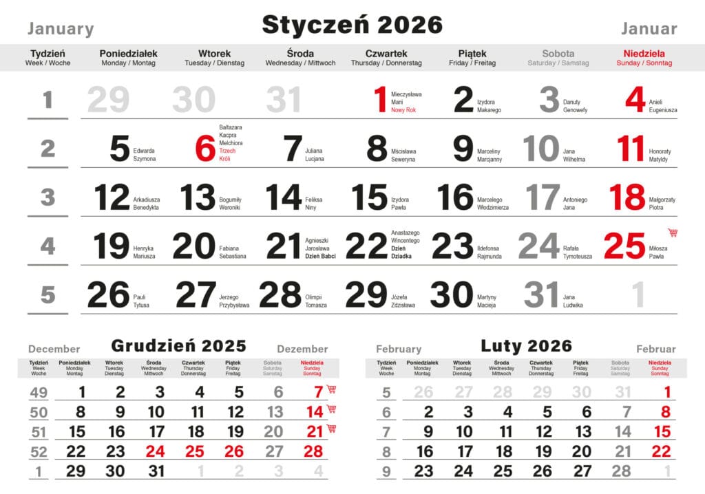 Najekonomiczniejszy kalendarz ścienny z indywidualną grafiką reklamową z naszej oferty. Mały, zgrabny a zarazem bardzo czytelny, widoczne 3 kalendaria na jednej planszy.