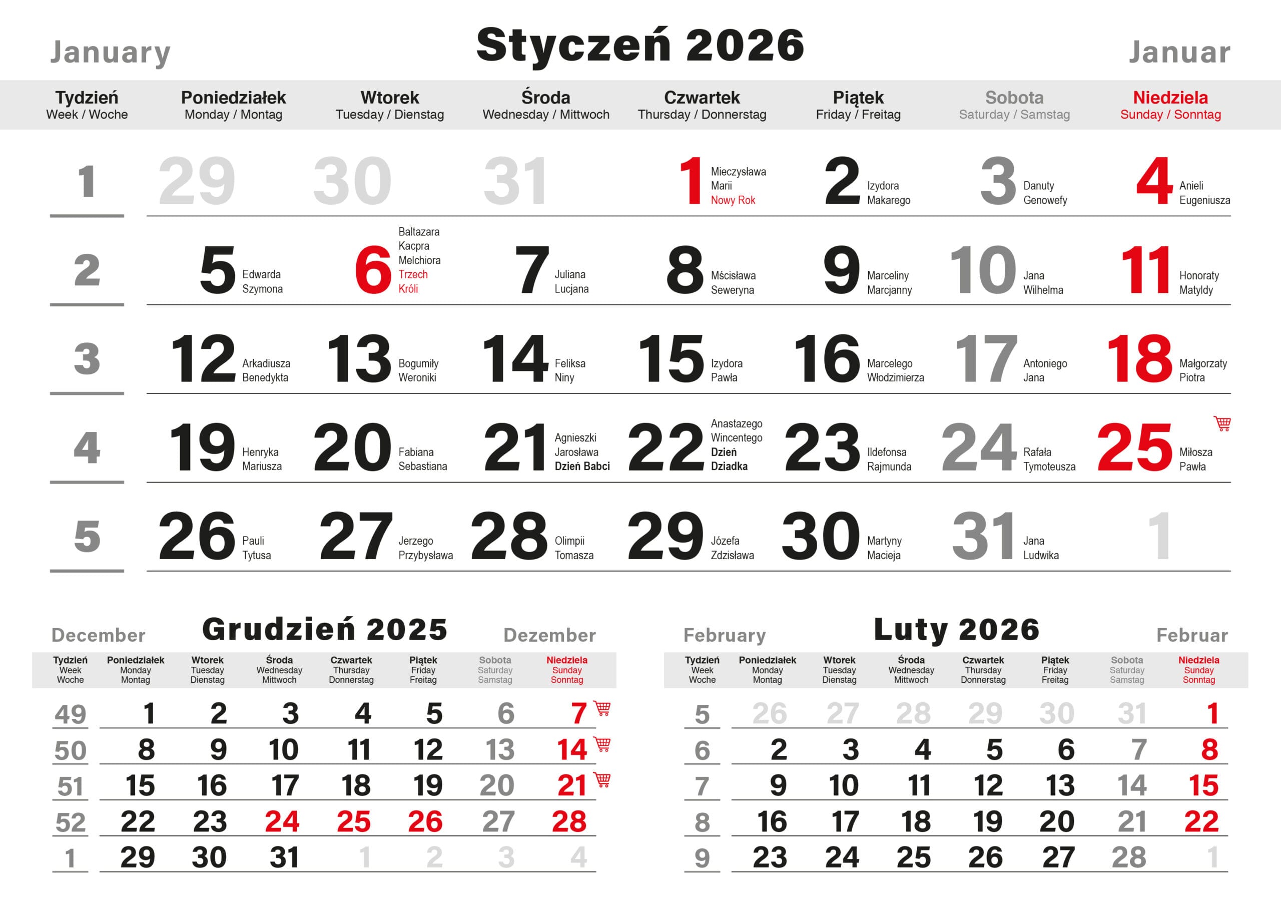 Najekonomiczniejszy kalendarz ścienny z indywidualną grafiką reklamową z naszej oferty. Mały, zgrabny a zarazem bardzo czytelny, widoczne 3 kalendaria na jednej planszy.
