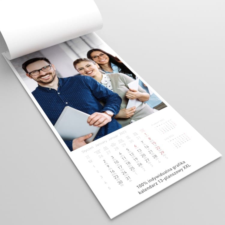 Kalendarz planszowy XXL – wykorzystaj jego powierzchnię! Umieść na kartach duże zdjęcia i czytelne kalendarium. Wydrukujemy według Twoich potrzeb.