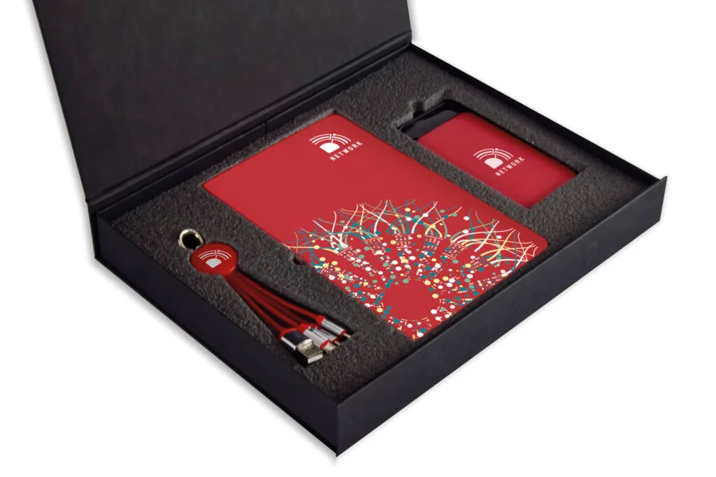 Zestaw upominkowy w eleganckim czarnym pudełku.