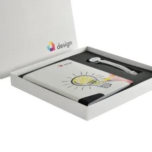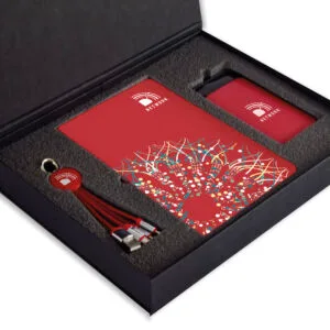 Zestaw upominkowy w eleganckim czarnym pudełku. Zestaw zawiera notes, długi lub krótki rozgałęźnik USB oraz…