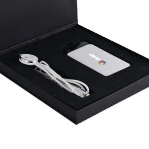 Zestaw upominkowy w eleganckim czarnym pudełku. Zestaw zawiera: POWER BANK: Pojemność baterii: 4000 mAh. Czterostopniowy…