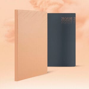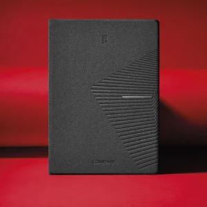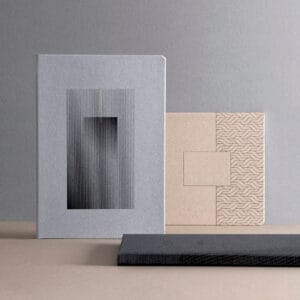 Papierowa oprawa o strukturalnej fakturze. Powlekany papier, w ponad 50% z recyklingu, o strukturze inspirowanej…