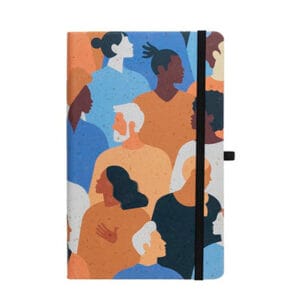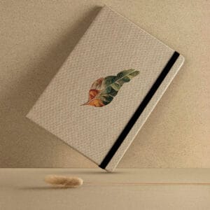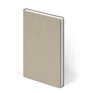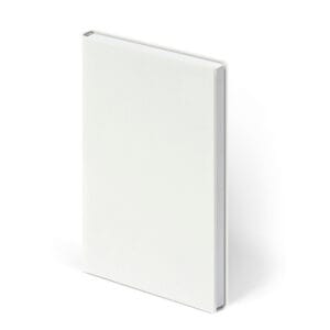 Biały materiał płócienny, z drobną strukturą, recyclingowy. Idealnie nadający się pod nadruk cyfrowy. Oprawa ma…
