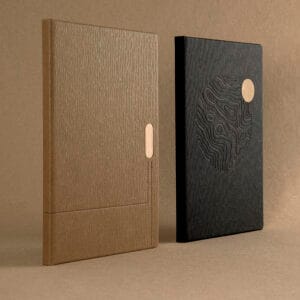 Papierowa oprawa o strukturalnej fakturze. Materiał z certyfikatem FSC w 100% recycled. Bardzo ładnie, głęboko…