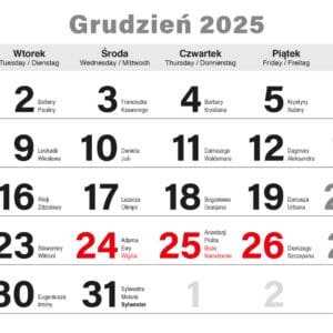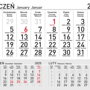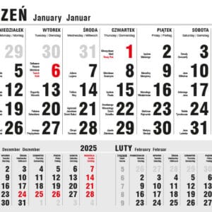 Wysokiej jakości trójdzielny kalendarz ścienny PLUS. Dłuższy i ciut szerszy od podstawowego modelu, kalendarium większe…