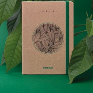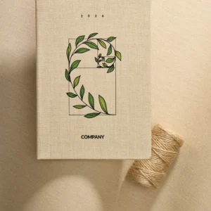 Ekologiczny kalendarz trójdzielny, wykonany z papieru z włókien trawy. Papier Kazan w kolorach zieleni i…