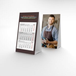 Podręczny kalendarz biurkowy do wyboru wersja pozioma i pionowa. Na podstawce możesz umieścić dowolną grafikę.…