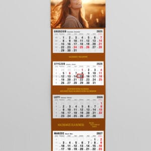 Klasyczny trójdzielny kalendarz ścienny, z możliwością zaprojektowania własnego tła (pleców) oraz główki. Solidne wykonanie idzie…