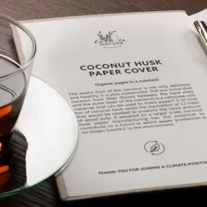Oprawa wykonana z 60% włókna łupiny kokosa oraz 40% odpadów bawełnianych. Jedna tona łupin orzecha…
