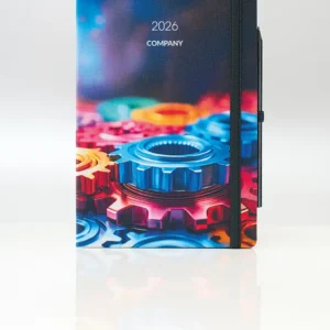 Innowacyjna, syntetyczna oprawa o wyraźnej fakturze, z regularnym, drobnym wzorem. Oprawa do kalendarza ma opcję…