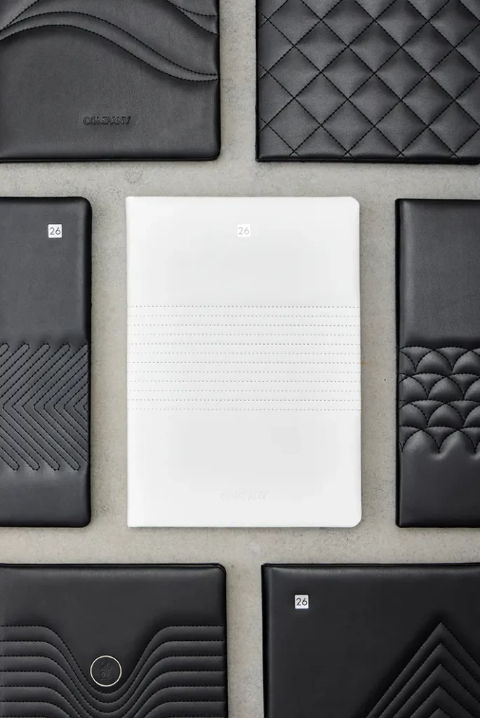 Ideo to luksusowa oprawa do kalendarzy, wykonana z miękkiego materiału imitującego naturalną skórę licową. Charakteryzuje się delikatną fakturą i matowością, co nadaje jej elegancki charakter i wygląd. Oprawa z możliwością nie tylko obszycia wokół okładki ale również szycia kreatywnego – dowolnego wzoru.