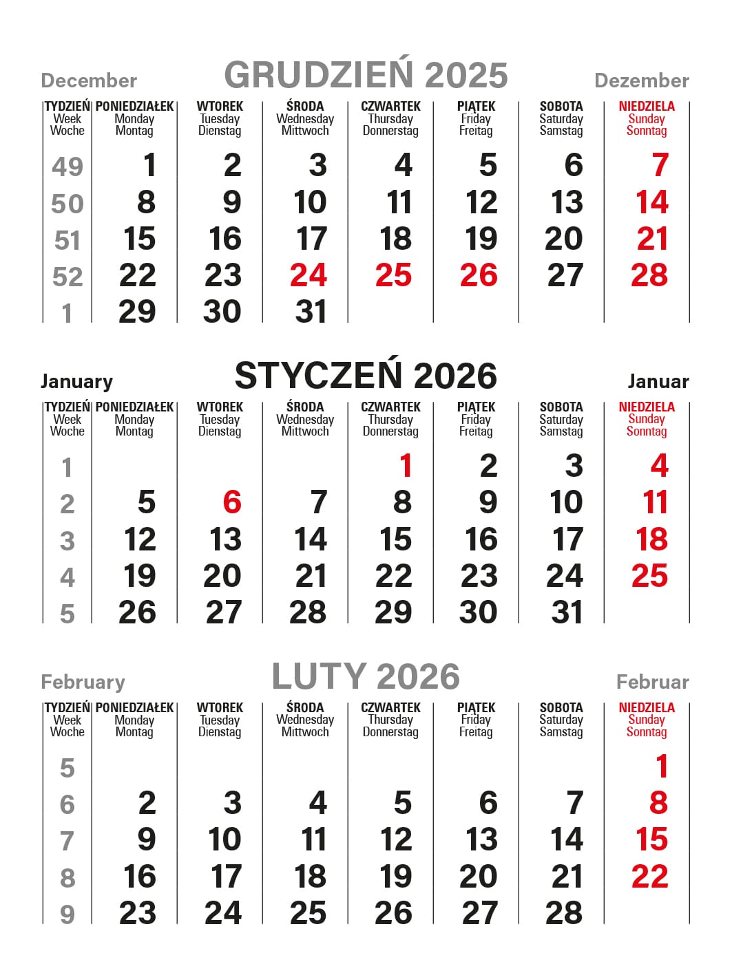 Kalendarze biurkowe poziome i pionowe