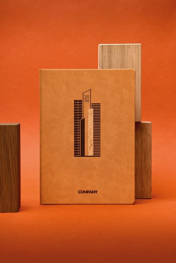 Oprawa swoją fakturą przypomina zamsz. Matowa, elegancka okładka bardzo ładnie, głęboko się tłoczy. Występuję w stonowanych, biznesowych kolorach.