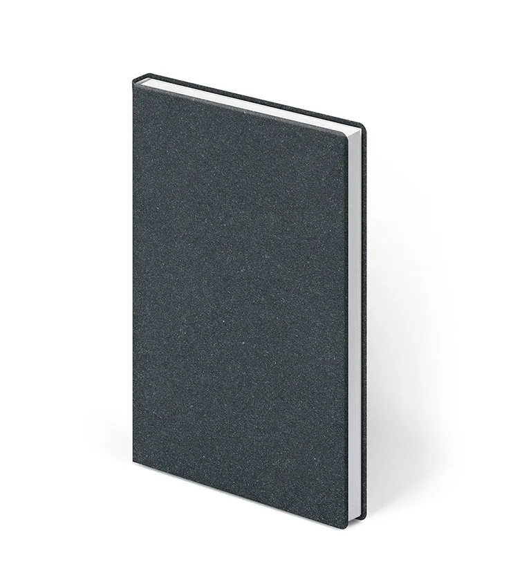 Oprawa wykonana ze skrawków skóry bydlęcej i naturalnego lateksu. Naturalna skóra pochodząca w 100% z recyclingu, odporna na przetarcia a zarazem gładka w dotyku. Występuję w kolorze grafitowym i brązowym. Okładka dedykowana pod tłoczenie folią lub nadruk UV.