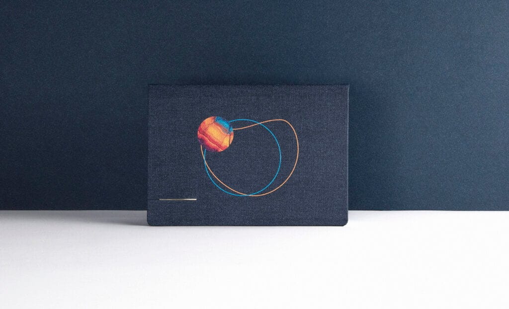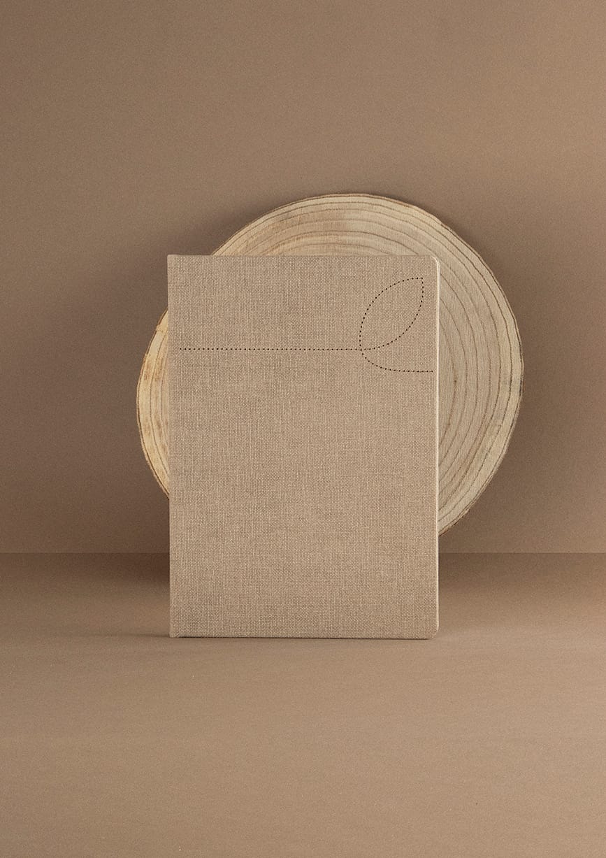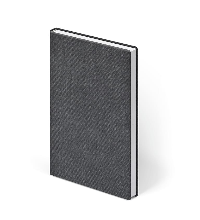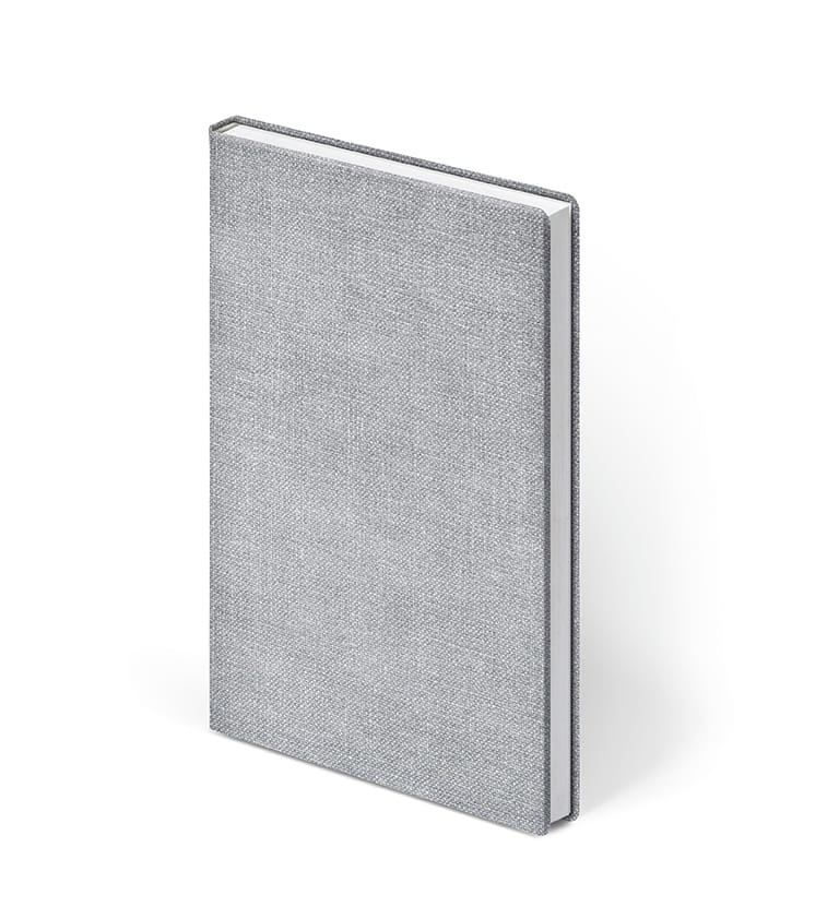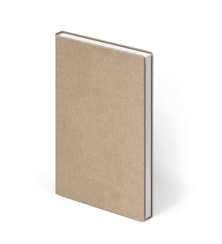 Papierowa oprawa o strukturalnej fakturze. Materiał z certyfikatem FSC w 100% recycled. Bardzo ładnie, głęboko się tłoczy, ale nadaje się też pod nadruk UV. Występuje w kilku kolorach.