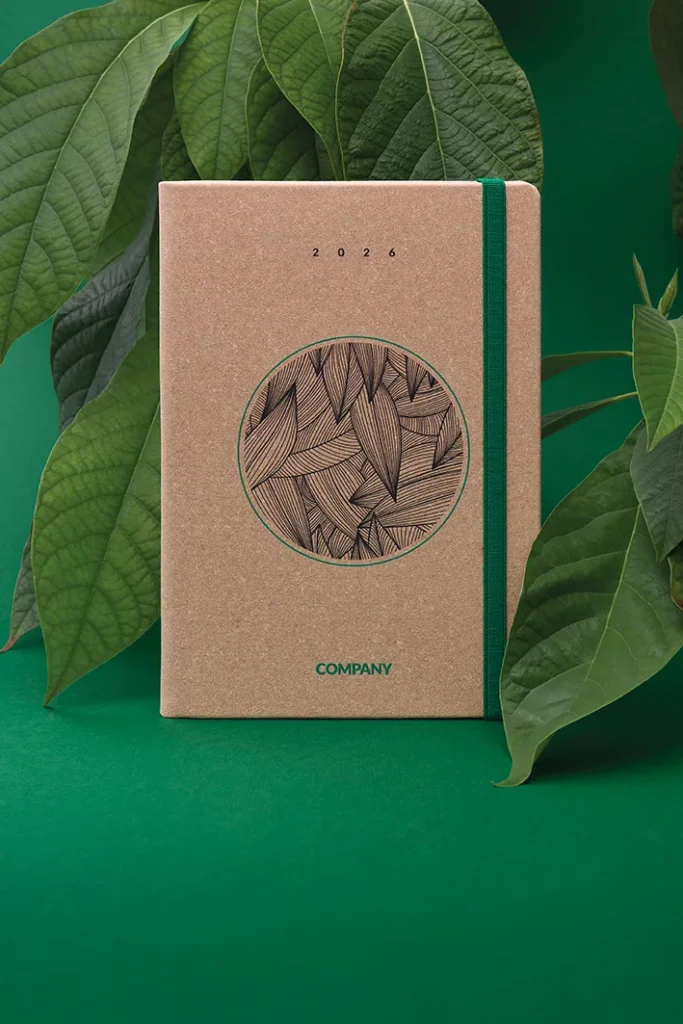 Oprawa wykonana ze skrawków skóry bydlęcej i naturalnego lateksu. Naturalna skóra pochodząca w 100% z recyclingu, odporna na przetarcia a zarazem gładka w dotyku. Występuję w kolorze grafitowym i brązowym. Okładka dedykowana pod tłoczenie folią lub nadruk UV.