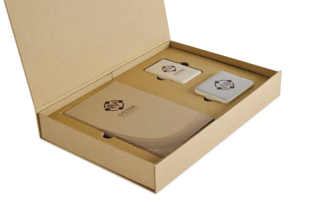 Zestaw upominkowy ekologiczny ECO SET 3. Zestaw składa się z notesu lub kalendarza, powerbanka oraz głośnika bluetooth.